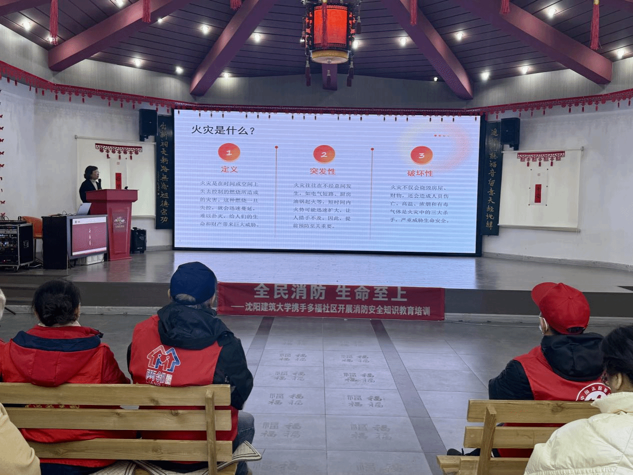 李畅教授向多福社区的居民们介绍了火灾的危害性和常见引发火灾的原因以及如何正确使用电器储存易燃物品等实用防火常识。还结合实际案例,制作了主题鲜明、内容详实的宣传材料,包括重案件及火灾事故中的逃生自救技巧,使居民们了解了家庭和社区防火工作的重要性。讲座结束后,大学生志愿者们深入社区向居民分发宣传单,引导居民做好防火工作,共同营造安全稳定的居住环境。