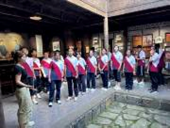 在徽派民居,大学生讲解员以我校“博学善建,厚德大成”校训为引领,一方面讲解徽派建筑“天人合一”的结构美学与中华优秀传统文内涵,结合学校在传统建筑修复与现代转化中的实践成果,让同学们感受文化传承与创新的力量,增强民族自豪感;另一方面走进红色校史馆,通过革命先辈“为人民谋幸福、为民族复兴”的奋斗事迹,尤其是其在教育、建设领域的开拓精神,引导同学们思考如何以先辈为榜样,将个人理想融入国家建设,在未来以扎实学识践行“严谨治学”的态度,传承红色基因,勇担时代使命。
